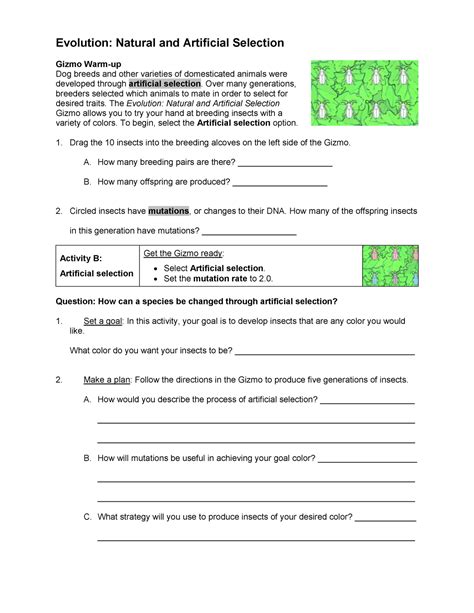 Read NATURAL AND ARTIFICIAL SELECTION GIZMO ANSWER KEY Open Library PDF